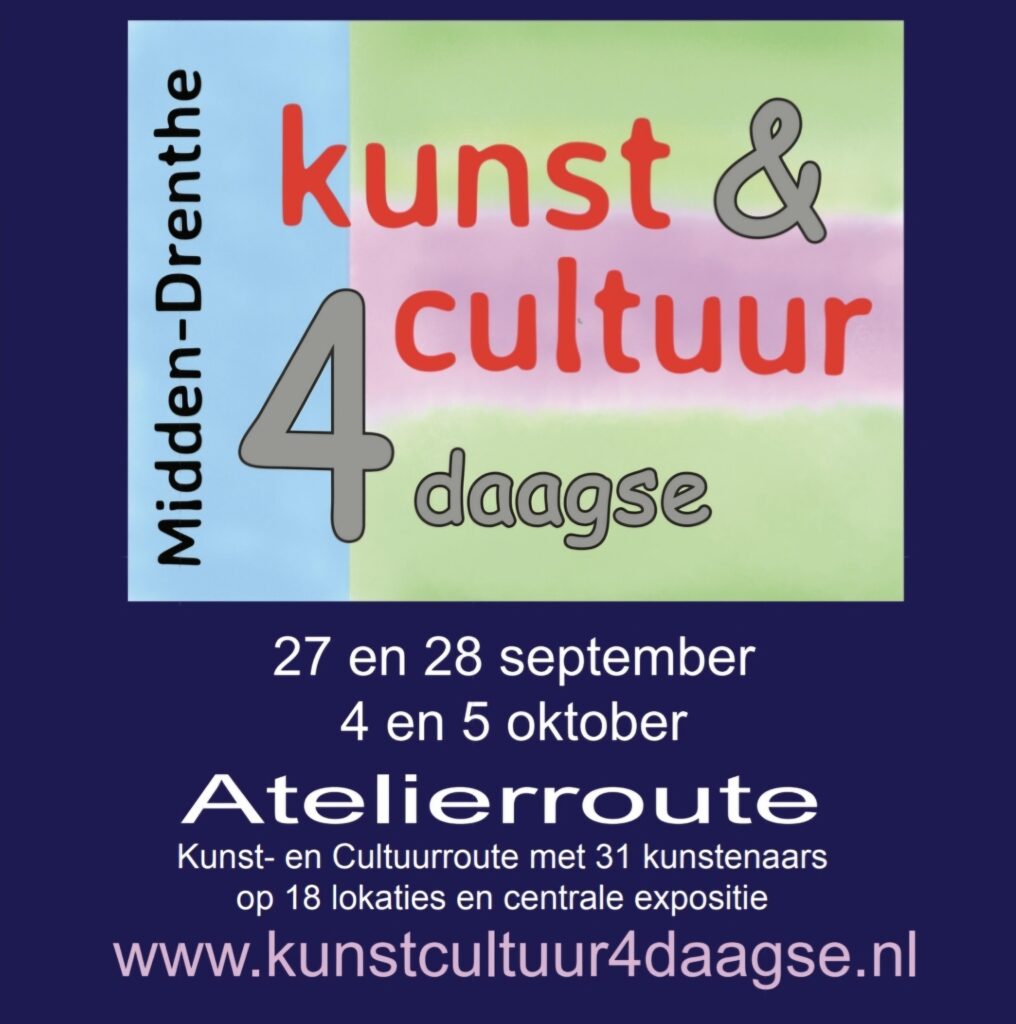 Van harte welkom in mijn atelier tijdens de ‘Kunst- en Cultuur 4daagse Midden-Drenthe’