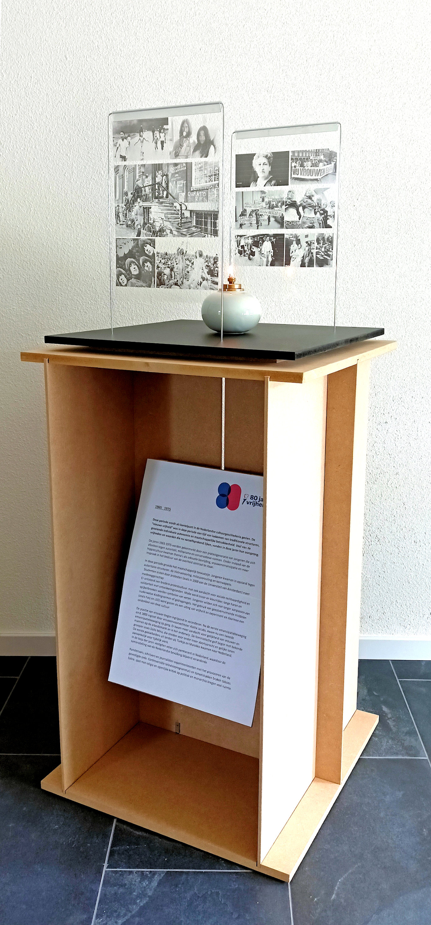 Met hun kunstproject over 80 jaar vrijheid reflecteren Henk Rusman en Jos de Vink op maatschappelijke veranderingen en verworven nieuwe vrijheden. Elke sokkel vertelt per decennium een verhaal dat ondersteund wordt met foto’s en een troostend lichtje voor allen die zich ingezet hebben voor de vrijheid in Nederland. Vrijheid is één van de meest gekoesterde waarden in elke samenleving.