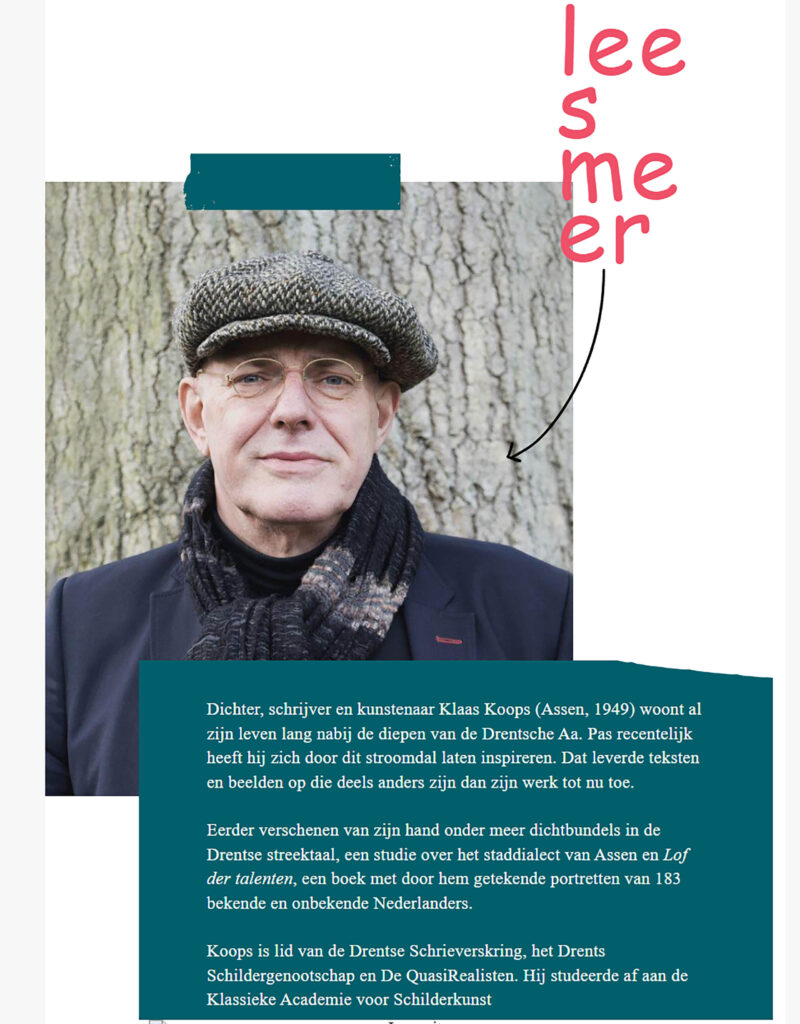 Het vormt daardoor een bijzondere bijdrage aan ‘stroomdalkunst’. Het boek van Klaas Koops verschijnt op vrijdag 17 oktober.