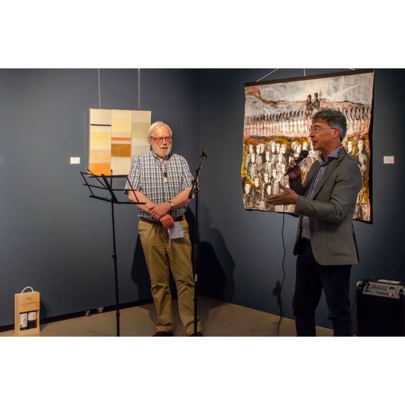 Daarna maakte Nico Vanderveen van de gelegenheid gebruik om Mark te bedanken voor de samenwerking gedurende al die jaren. Nico memoreerde dat Mark als eerste exposeerde in de galerie die destijds door het CBK Drenthe werd gerund.