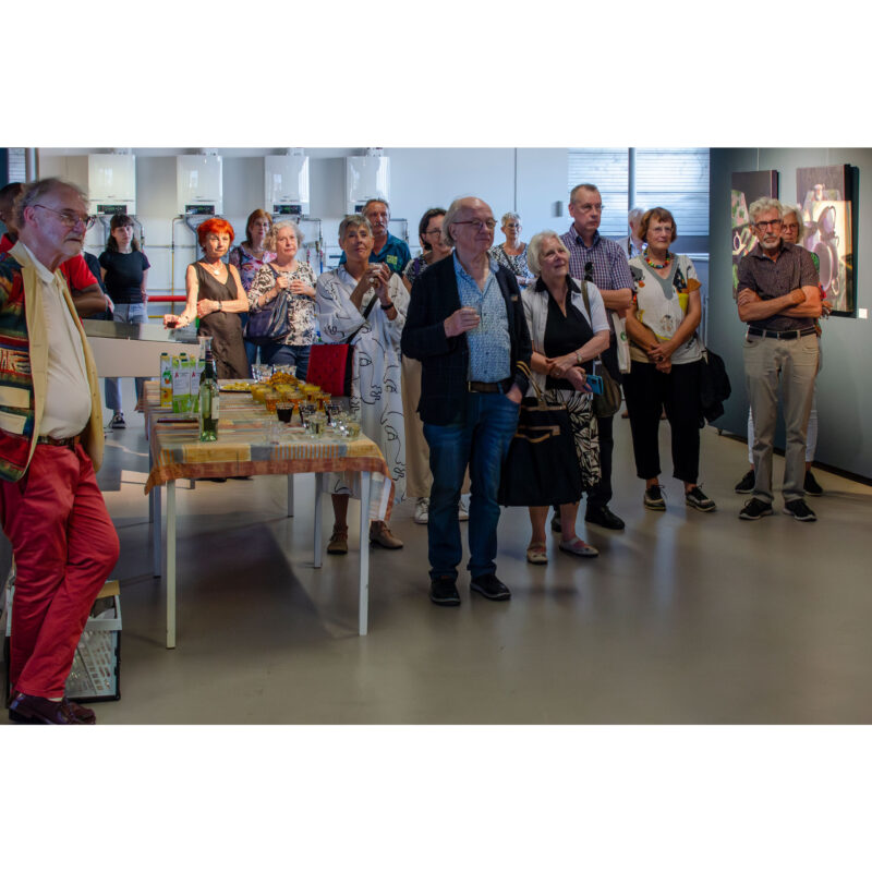 Ten slotte kon Jan Jaap overgaan tot de opening van de expositie, die in totaal 40 kunstwerken beslaat, van 9 nieuwe DSG leden. Onder het genot van een drankje en een hapje maakten de genodigden een rondje langs de prachtige kunstwerken, waarbij regelmatig te horen viel dat de hangcommissie een zeer fraaie prestatie heeft geleverd.